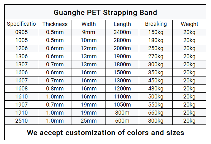 Our polyester strapping (PET strapping) is a high-strength, durable, and environmentally friendly packaging material widely used in various industrial sectors. Compared to traditional steel and PP strapping, polyester strapping combines the strength of steel with greater safety and economy. Unlike steel strapping, plastic strapping has higher holding tension and elongation. Furthermore, it boasts excellent weather resistance, will not rust, and is UV resistant. It weighs only one-seventh as much as steel strapping, yet offers greater elasticity. This makes PET strapping tear-resistant, meaning that even scratches or cuts will not affect the overall lifespan of the strapping. Polyester strapping is particularly suitable for packaging heavy items. It not only ensures the safety of the goods but also improves transportation efficiency.